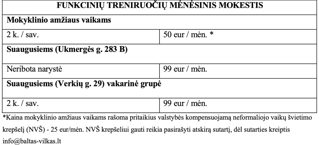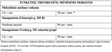 TRENIRUOČIŲ KAINOS