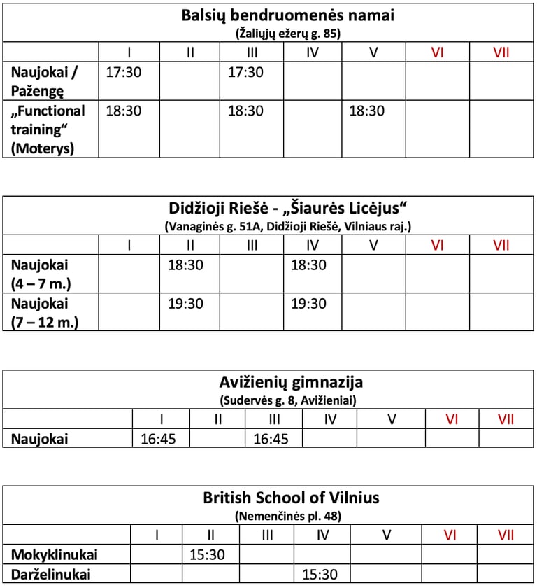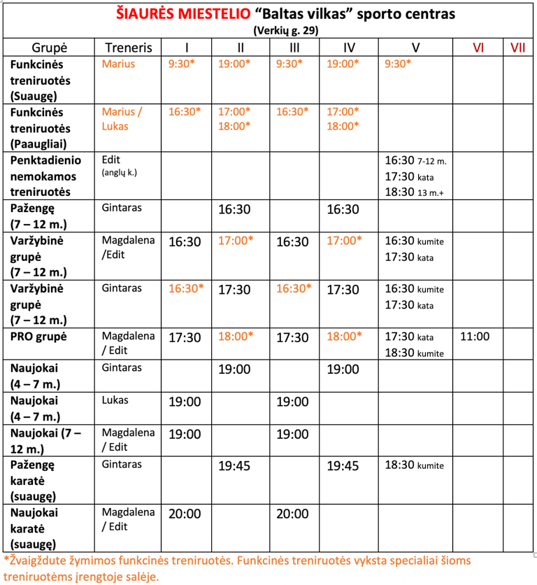 TRENIRUOČIŲ TVARKARAŠTIS
